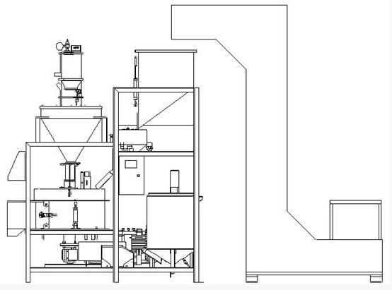 本套生產(chǎn)系統(tǒng)主要由自動裹衣機(jī)、給料提升機(jī)、真空上粉機(jī)等部分組成;其中自動裹衣機(jī)由裹衣系統(tǒng)、定量給料系統(tǒng)、定量供粉系統(tǒng)、定量供液系統(tǒng)和主機(jī)架等組成。
