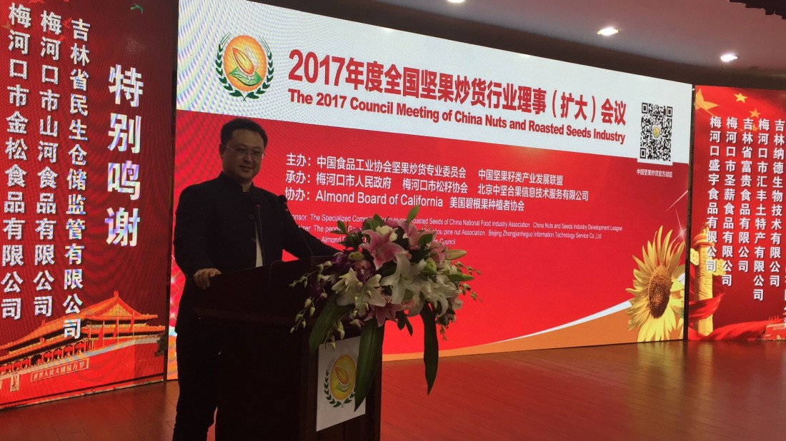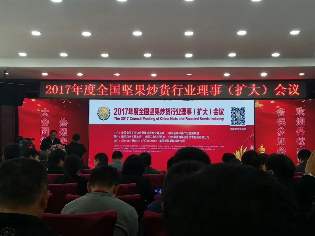 由中國(guó)食品工業(yè)協(xié)會(huì)堅(jiān)果炒貨專業(yè)委員會(huì)主辦的“2017年度全國(guó)堅(jiān)果炒貨行業(yè)理事會(huì)(擴(kuò)大)會(huì)議”,于2017年10月23日—25日在吉林梅河口市召開。出席此次會(huì)議的代表有:協(xié)會(huì)執(zhí)行會(huì)長(zhǎng)、副會(huì)長(zhǎng)、全體理事單位;梅河口市政府、廣西龍州縣政府、云南臨滄縣政府有關(guān)部門領(lǐng)導(dǎo)以及吉林省有關(guān)市縣的領(lǐng)導(dǎo);出席的有關(guān)部門還有國(guó)家食藥監(jiān)總局三司、吉林省食品安全質(zhì)量檢驗(yàn)檢測(cè)所,以及美國(guó)、俄羅斯、越南、巴基斯坦等國(guó)家堅(jiān)果協(xié)會(huì)、企業(yè)代表,共計(jì)500余人參加了會(huì)議。