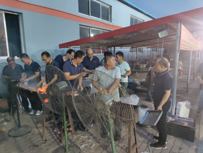 各部門員工自己動起手來烤燒烤,忙的不亦樂乎。