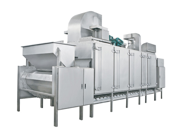 該烤爐采用循環(huán)熱風(fēng)方式進(jìn)行穿透式烘烤;烘烤過程物料厚度、行進(jìn)速度自動可調(diào),連續(xù)進(jìn)出;烘烤溫度單元式控制,可實(shí)現(xiàn)各單元溫度獨(dú)立調(diào)整;后置獨(dú)立冷卻區(qū),無需單獨(dú)冷卻;模塊式結(jié)構(gòu),產(chǎn)量提高亦無須變更設(shè)備;熱源多元化,可使用天然氣、液化氣、導(dǎo)熱油、電等。本機(jī)以其結(jié)構(gòu)及性能的優(yōu)越特點(diǎn),為堅(jiān)果炒貨行業(yè)提供了一機(jī)多用,產(chǎn)品質(zhì)量穩(wěn)定的理想設(shè)備,主要可加工的產(chǎn)品有五香花生米、乳白花生米、磨醬米、巴旦木、腰果、蕎麥等各種顆粒類食品。
